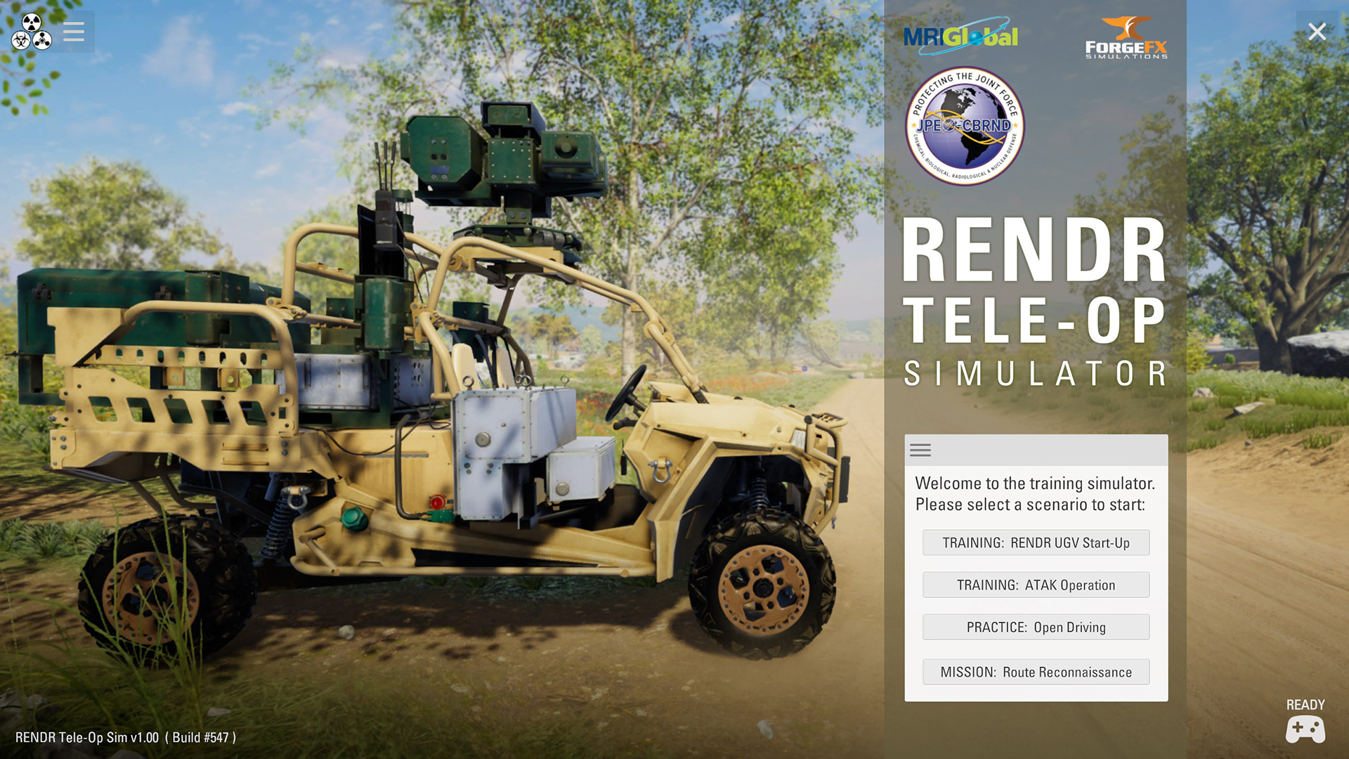 Vehicle and Sensor Training Simulator by MRIGlobal and ForgeFX Simulations, for JPEO-CBRND